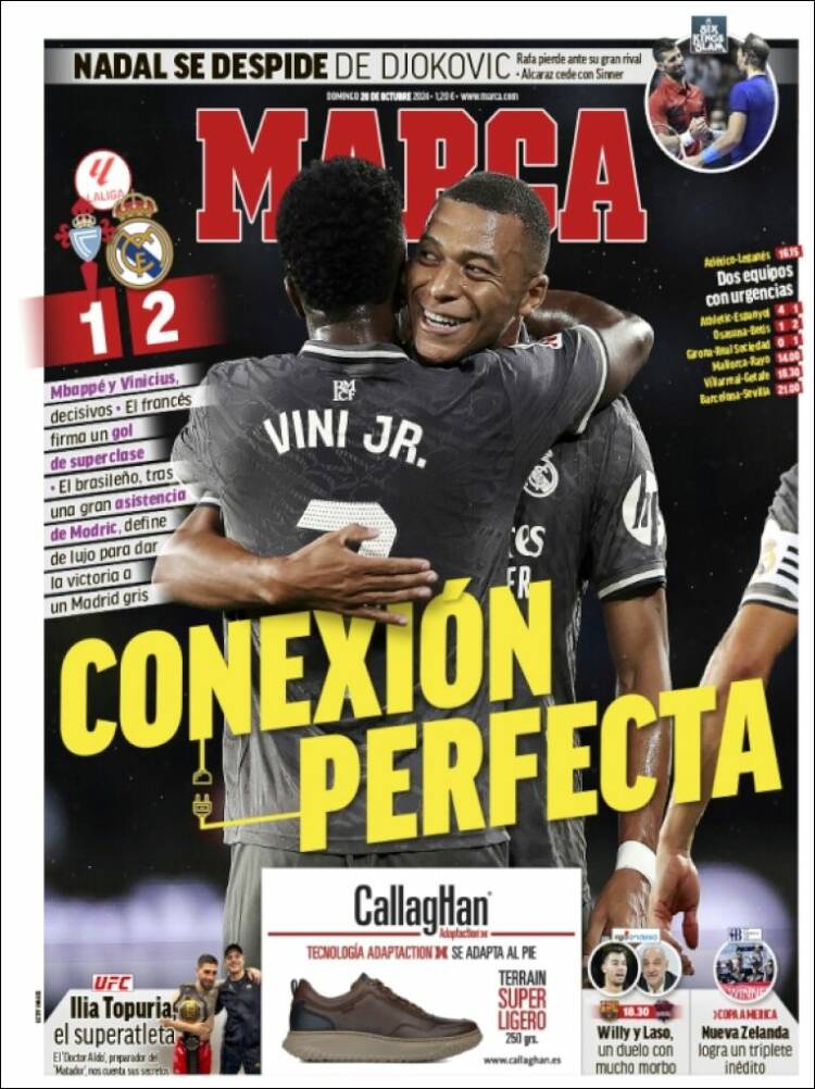 Como se verá a continuación, la prensa de hoy no hace sangre con el juego poco convincente del equipo, sino que pone el foco en lo positivo. Duele como pocas cosas tener que decir esto, pero haría bien el madridismo de las redes en imitar en esto a la prensa, aunque sea por una vez. Aunque a ellos les parezca mentira, pasaron cosas buenas ayer en Vigo. Véase la que destaca Marca.