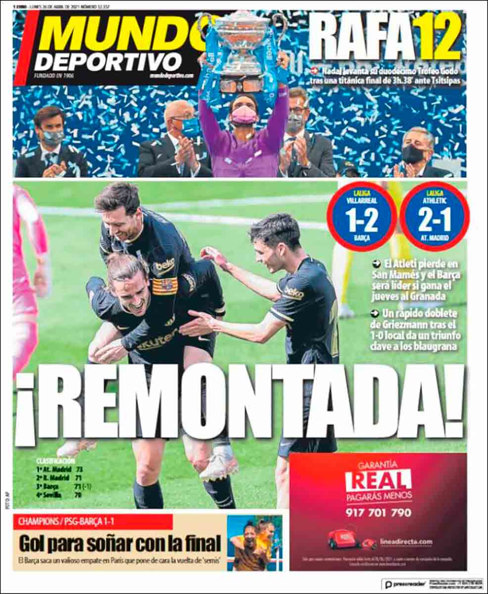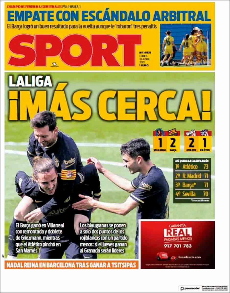 La prensa cataculé lo reconoce y se regocija por ello sin remilgos. Sport y Mundo Deportivo nos traen la misma foto de celebración, en la que Griezmann, autor de un doblete, es cabalgado por Messi como en una escena de western crepuscular. Habrá que preguntar a nuestro experto en John Ford, Athos Dumas, a qué película del maestro recuerda la escena. “Centauros del desierto” no creemos que sea, por el césped fragante sobre la que se asienta la escena, y porque cualquier parecido entre Messi y John Wayne es mera coincidencia. Lo que tal vez no sea coincidencia es que ninguno de los dos rotativos filoazulgranas recoja la expulsión de Trigueros en el minuto 65, que dejó tocado al Villarreal en su aspiración de remontar, y que pudo ser justa o no, dependiendo de otras jugadas con las que las compares, y que recientemente no fueron castigadas con la misma severidad.