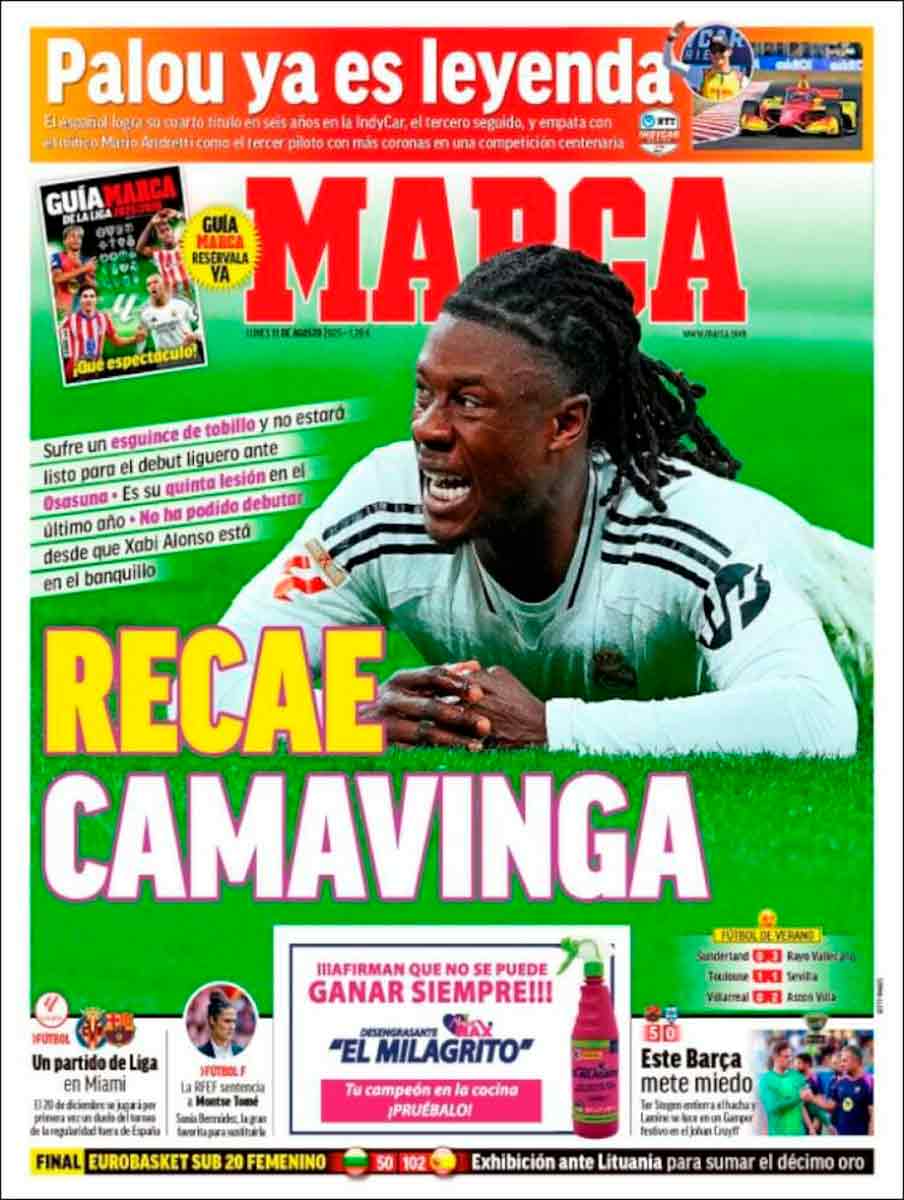 Marca, cada día más hoja parroquial de D. Javier, abraza el sensacionalismo más catastrofista a cuenta de la nueva lesión de Camavinga.