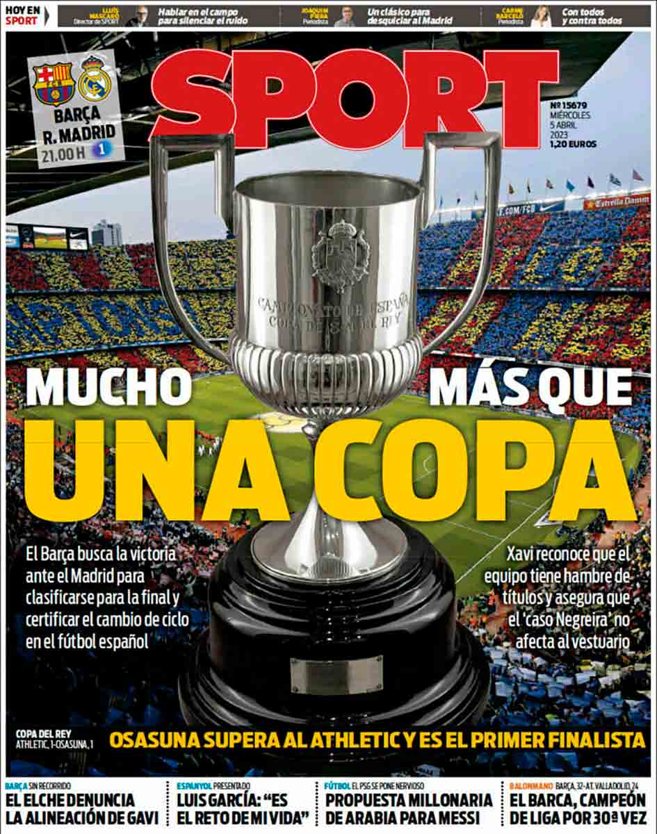 En la portada de Sport podemos leer arriba a la derecha la redacción escolar de Carme Barceló titulada “Con todos y contra todos”. Es tan entrañable que solo le falta un gritito de ¡yupiii! al final.