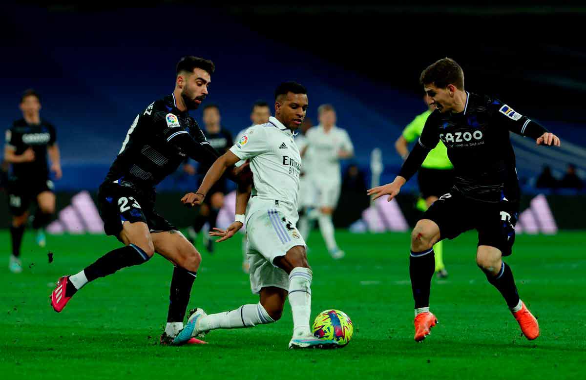 La Real tiene piezas importantes en ataque y en el nueve han sumado a André Silva y a Sadiq que prácticamente estuvo inédito el curso pasado por una lesión. Además, Kubo ha dado un paso en cuanto a cifras goleadoras y Barrenetxea también parece más maduro y dispuesto a sumar de cara a puerta. En 4 partidos han logrado siete goles aunque todos ellos en su feudo. La Real es un equipo con calidad, talento e imaginación en ataque. En cualquier jugada, una genialidad en forma de pase de Kubo, la presencia en el área o el disparo de Brais, el olfato de Oyarzábal, la llegada de Merino o el desborde de Barrenetxea. Por las bandas serán un cuadro peligroso a la contra con espacios o en los desmarques inteligentes y dañinos de Oyarzábal. Rüdiger y Alaba tendrán que estar atentos al delantero vasco porque se mueve bien, baja a recibir y participar del juego, abre huecos para la subida de los interiores y en las inmediaciones del área saca su disparo con la zurda con rapidez y potencia.