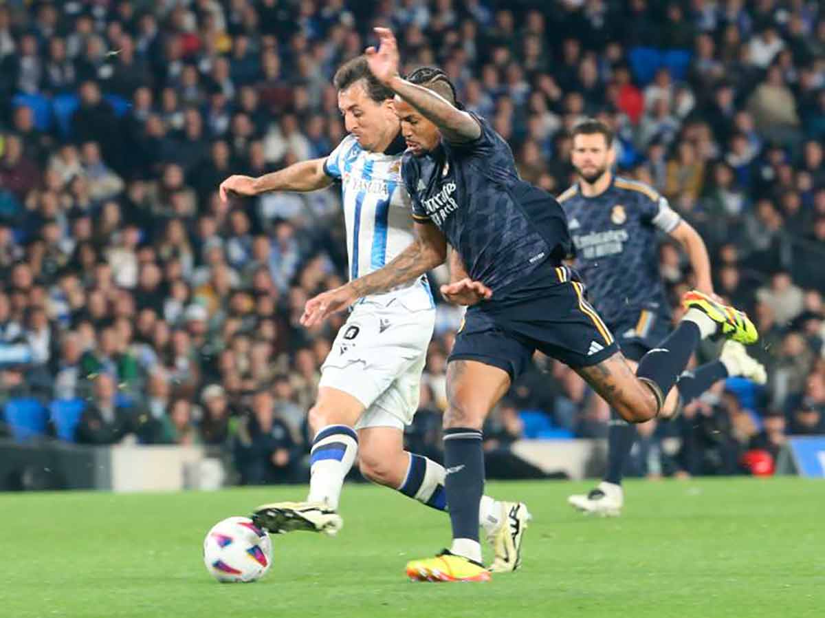 Por las bandas serán un cuadro peligroso a la contra con espacios o en los desmarques inteligentes y dañinos de Oyarzábal, que no está para ser titular, pero sí para ayudar como confirmó en rueda de prensa Imanol. Rüdiger y Militao tendrán que estar atentos al delantero vasco cuando salga desde el banquillo porque se mueve bien, baja a recibir y participar del juego, abre huecos para la subida de los interiores y en las inmediaciones del área saca su disparo con la zurda con rapidez y potencia.