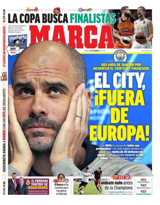 Buenos días. Se ha confirmado la sanción de dos años sin disputar competiciones europeas para el Manchester City. La UEFA castiga así, y con una multa de 30 millones de euros, el incumplimiento del Fair Play Financiero por parte del club inglés, al que condena a una pena que sus mandatarios ya han anunciado que recurrirán.