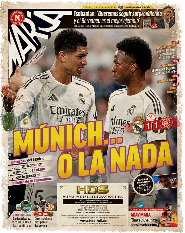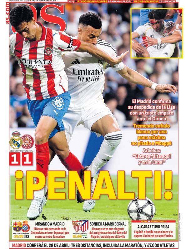 As, en cambio, sí que lleva el término “PENALTI” a su portada. Solo As guarda una mínima dignidad entre las cuatro cabeceras deportivas de España. Los tipos de la sala VOR, quizá mediatizados por el locutor Martínez y compañía, no hicieron siquiera recomendación de revisión. No tenemos pruebas ni dudas del motivo.