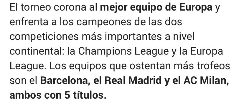 Este partido se juega porque así lo ha querido la UEFA, y enfrenta al mejor equipo de Europa, que es el campeón de la Champions, con el mejor de entre todos los quintos y sextos de cada país con el añadido de varios descartes de la propia Champions, que es el campeón de la Europa League. La Supercopa de Europa no dilucida un carajo (con perdón) respecto a quién es el mejor equipo de Europa. La Supercopa de Europa sólo corona (por utilizar el pomposo verbo de As) al propio campeón de la Supercopa, es decir, la Supercopa sólo se dilucida a sí misma. Bien está que exista (o no, sobre eso hay división de opiniones), pero no nos volvamos locos con ella, la gane quien la gane.
