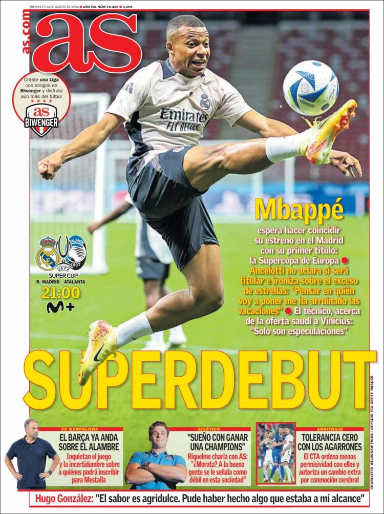 Por supuesto, la ocasión que esta noche nos congregará en torno a la televisión (o en Varsovia para quienes tienen la suerte de estar allí) es también la del debut de Mbappé, oficial o no en este caso, ya que el gran fichaje vikingo para esta temporada aún no ha disputado un solo minuto con su nuevo equipo, ni siquiera en un amistoso al no haber acompañado a sus compañeros en la gira estadounidense de comienzos de mes.