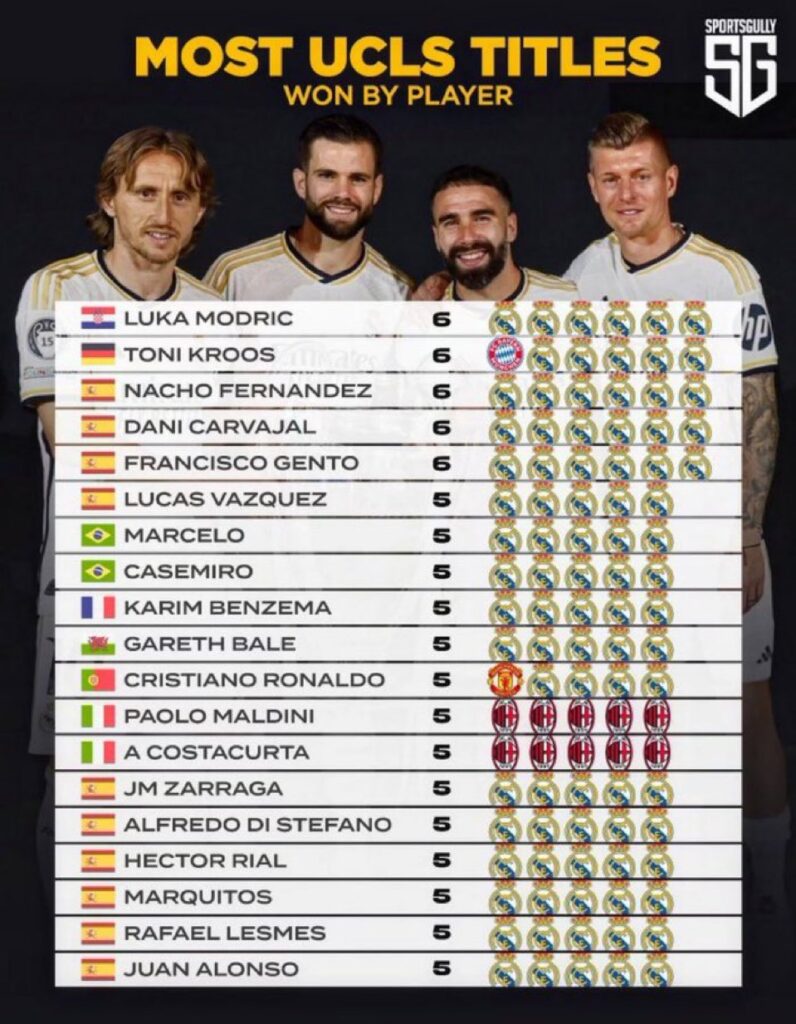Gento, el único hombre que supo ponerle un 6 a la Champions antes de que nacieran los del siglo XXI. Y ahora, repiten la hazaña (e incluso la superan si sumamos Supercopas, Mundiales de Clubes y alguna noche épica en Múnich o Manchester), nombres que, en cualquier otro club, serían tratados como deidades: Modric, Kroos, Nacho, Carvajal, cuatro leyendas vivas a las que aquí algunos aún se han permitido criticar sin sonrojo, sin pausa y sin neuronas.