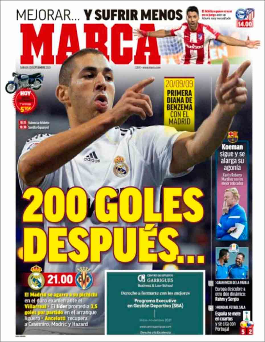 Por su lado, Marca nos trae a la portada una foto antigua de Karim Benzema, tan antigua que no tenía el meñique partido y con forma de metro de carpintero.