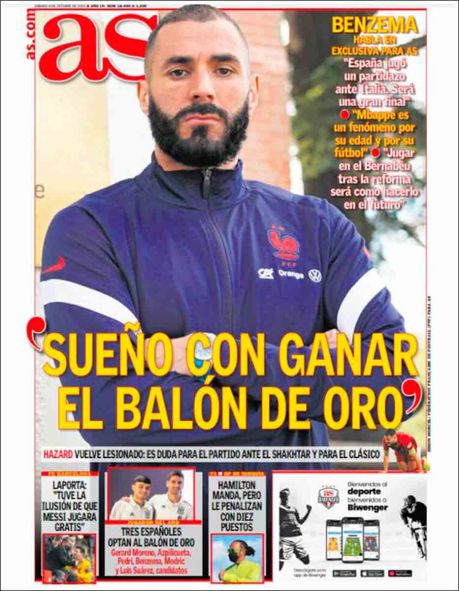 Dejamos lo mejor de las portadas para el final, para el único que no sale mostrando un pulgar, sino con los brazos cruzados y cara de pocos amigos, nuestro admirado Karim Benzema.