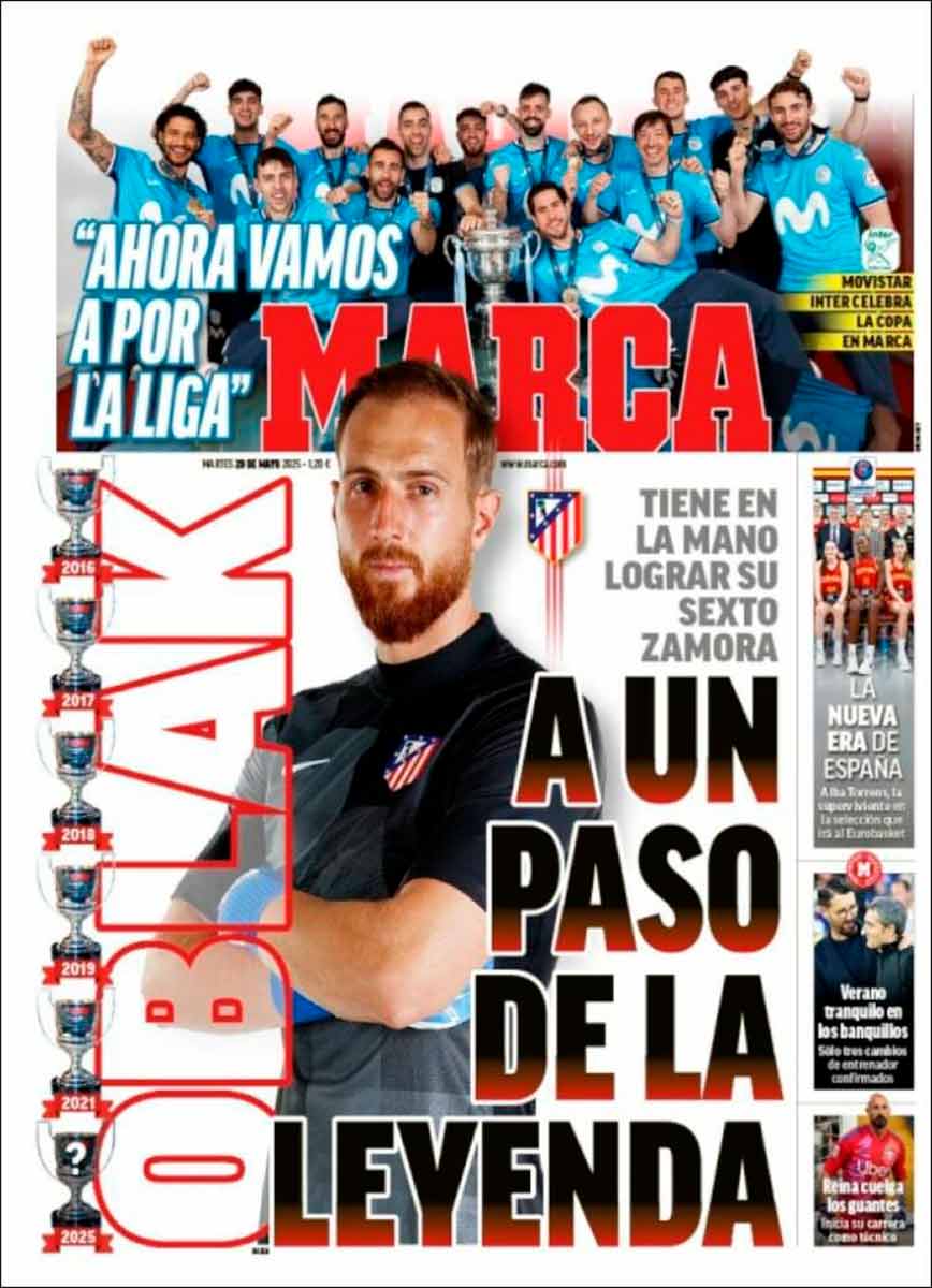 Por lo demás, Marca abre hoy con una portada para consumo interno del prescrito Miguel Ángel Gil Marín y de la familia de Oblak, excelente guardameta cuyas manoplas tantas veces han salvado al aguerrido Atleti. Que la disfruten.
