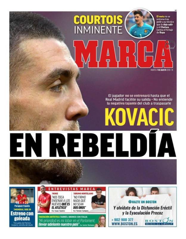 En Madrid, mientras tanto, qué os vamos a contar. Se nos está haciendo eterno el verano. Se fue Zidane, se fue Cristiano, Modric no abre la boca pese a las especulaciones sobre su futuro y ahora Kovacic podría declararse en rebeldía -según 'Marca'-, aunque Lopetegui, en sala de prensa, ha asegurado no tener constancia de esto y espera que ambos croatas sean felices en el Real Madrid la próxima temporada.