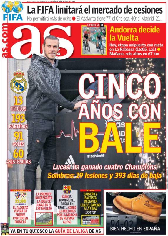 De la Ouija os traemos una de las más torticeras y sibilinas primeras páginas de cuantas han jalonado su infame, ridícula campaña de patadas a Florentino propinadas sobre el trasero de Gareth Bale. Un balance aparentemente equilibrado con pros y contras de la estancia del galés en el Real Madrid. Aparentemente. Luces: ha ganado 4 Champions. Sombras: se lesiona mucho. Se lesiona aproximadamente igual que Varane y Carvajal, a quienes (en cambio) dichas lesiones no les cuentan como deméritos en ese recorrido de éxitos que constituyen la segunda era dorada de la historia del club, protagonizada entre otros por Bale en una sucesión de actuaciones antológicas. Una portada que se permitía perdonarle la vida al de Cardiff, y de la cual ya dimos buena cuenta en el portanálisis de aquel día.