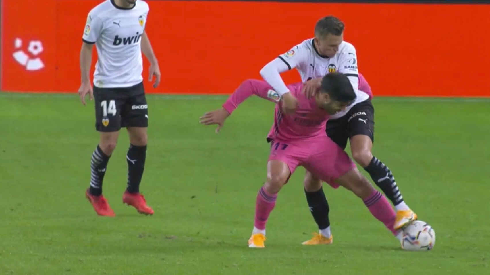Para los amantes de las estadísticas aquí va un dato ( o unos datos, mejor dicho): en el intervalo aproximado que va del minuto 30 al 60 del partido Valencia Real Madrid el Madrid fue 'agasajado' con 4 penaltis en contra (recuerden que uno se repitió). En todo el conjunto de la Liga el Madrid fue 'agasajado' con 3 penaltis a favor. Con una sencilla resta y tomando el dato de unos 95 minutos disputados por partido, los 90 reglamentarios más unos 5 de descuento, sale que al Madrid le han lanzado más penaltis contra su portería en media hora que los que él ha lanzado contra las porterías contrarias en 3610 minutos. Recuerden: Más en 30 que en 3610. Ahí queda eso.