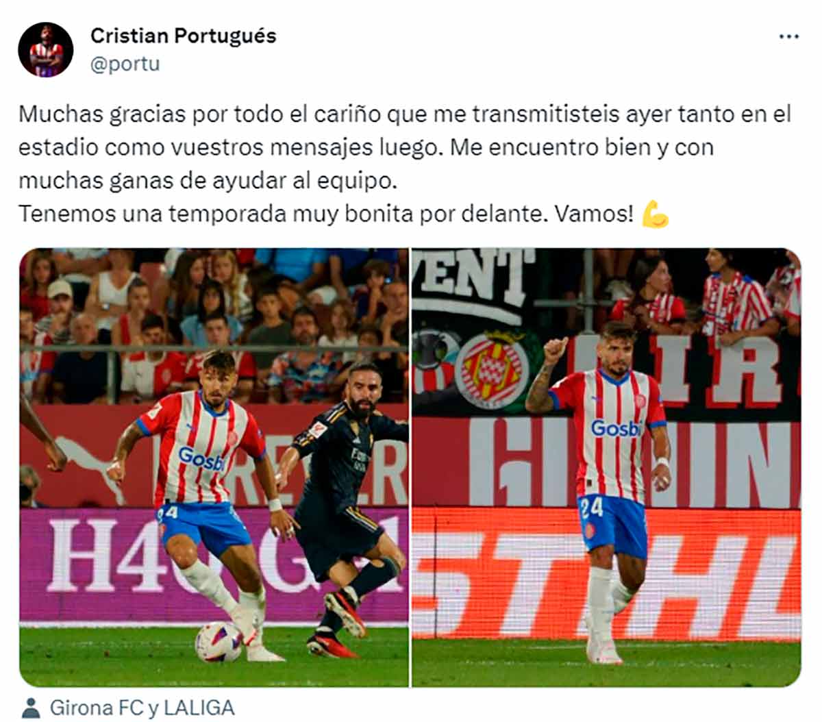 Nos alegramos mucho de que Correa esté vivito y goleando, como nos alegramos del buen estado de Portu, jugador del Girona que llegó a ir al hospital tras una muy dura entrada de Nacho en el partido del sábado.
