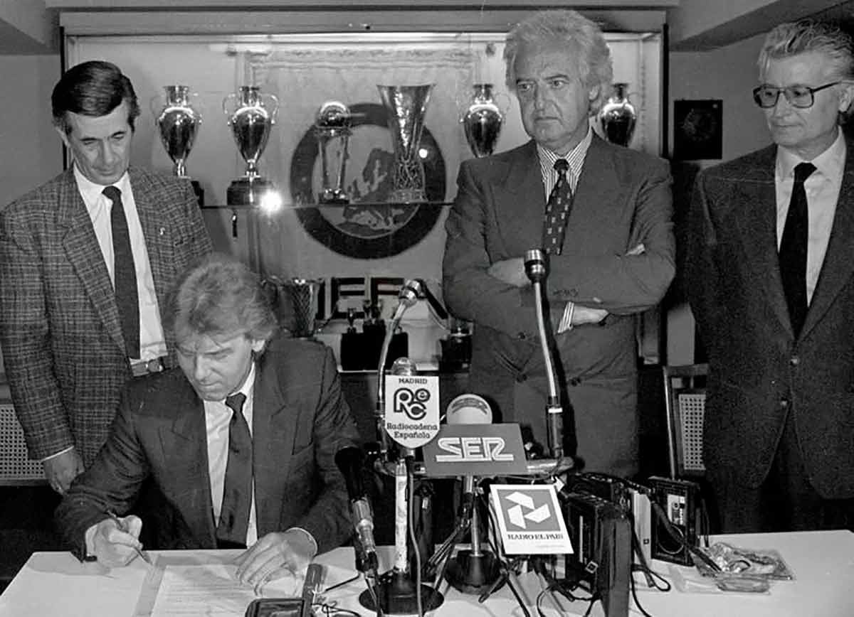 Con la llegada de la primavera, hubo una primera toma de contacto en Bruselas y más tarde dos en la capital de España. Mendoza y Leo Beenhakker congeniaron y en el mes de abril de 1986 se hizo oficial el acuerdo. El presidente lo confirmó en Milán, manifestando, además, que “Beenhakker es un entrenador moderno, gran persona, hombre joven, conocedor del fútbol europeo y que encajará bien con la plantilla”. Otro que habló para elogiar la figura del neerlandés fue Valdano, que señaló que “conoce de futbolistas y de seres humanos” y lo calificó como “un defensor del fútbol abierto y tácticamente valiente; Leo es ambicioso en sus sistemas de juego y tiene capacidad para contagiar y transmitir esa mentalidad”.