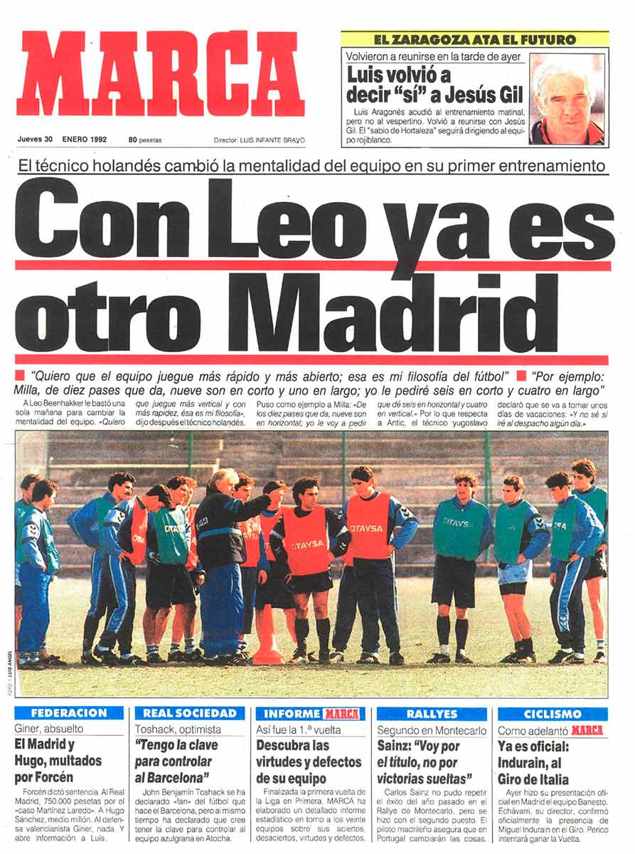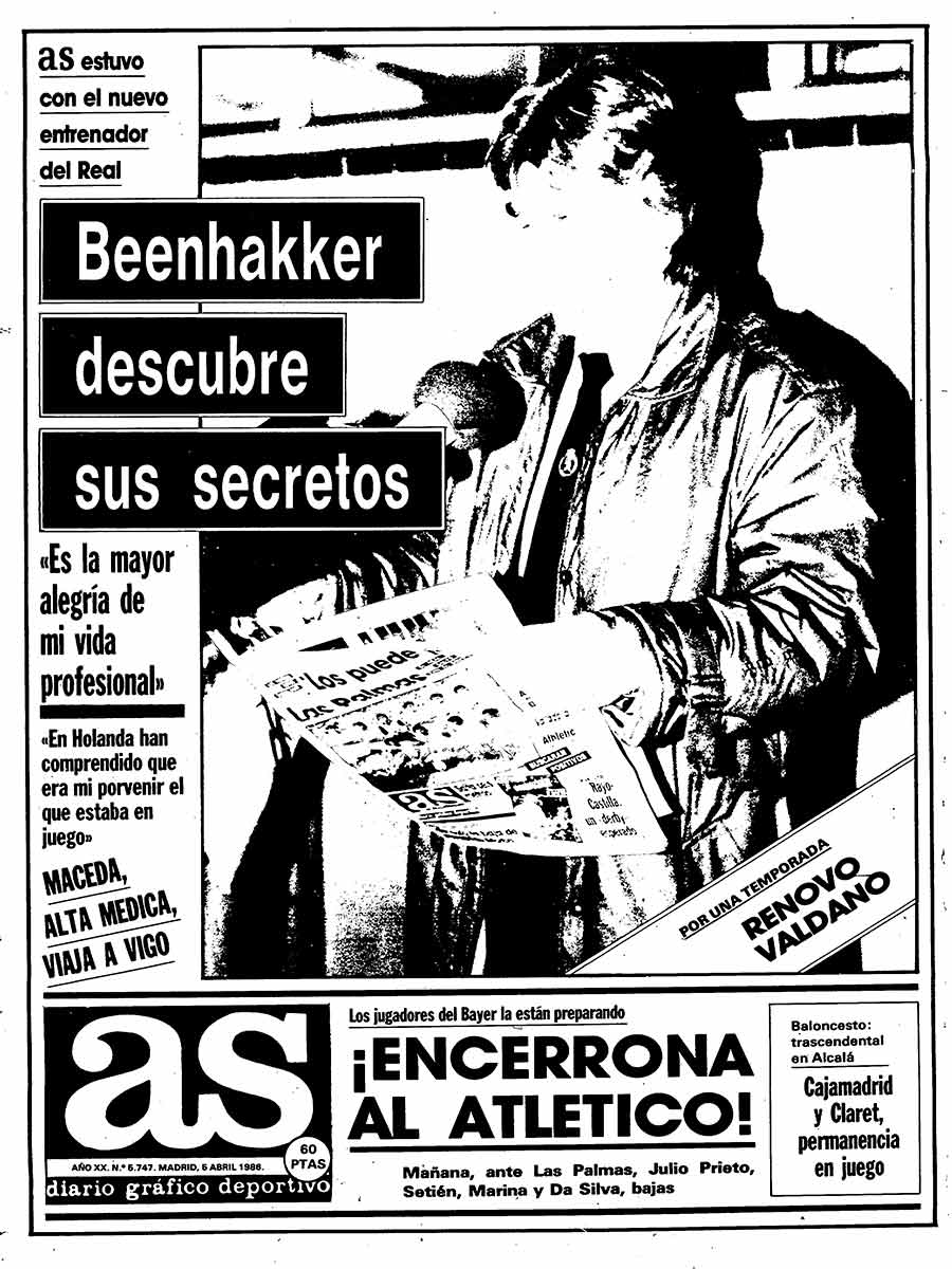 La portada de AS decía: ‘Beenhakker descubre sus secretos’. En cuanto a la disciplina, declaró: “¿Duro?: jamás permití que nadie dejara de cumplir con su deber”. Si había dudas respecto a su pasado, se reivindicó: “No hay que olvidar que ya gané un título de Liga en mi primer año de entrenador con el Ajax y creo que esto es ya una buena referencia. Por otra parte, mi paso por Zaragoza creo que fue positivo”. Por último, respecto a si iba a tener plenos poderes respondió que “a eso te diré que yo tengo mis propias concepciones del fútbol y estoy seguro de que no planteará problema alguno este asunto cuando llegue el momento”.