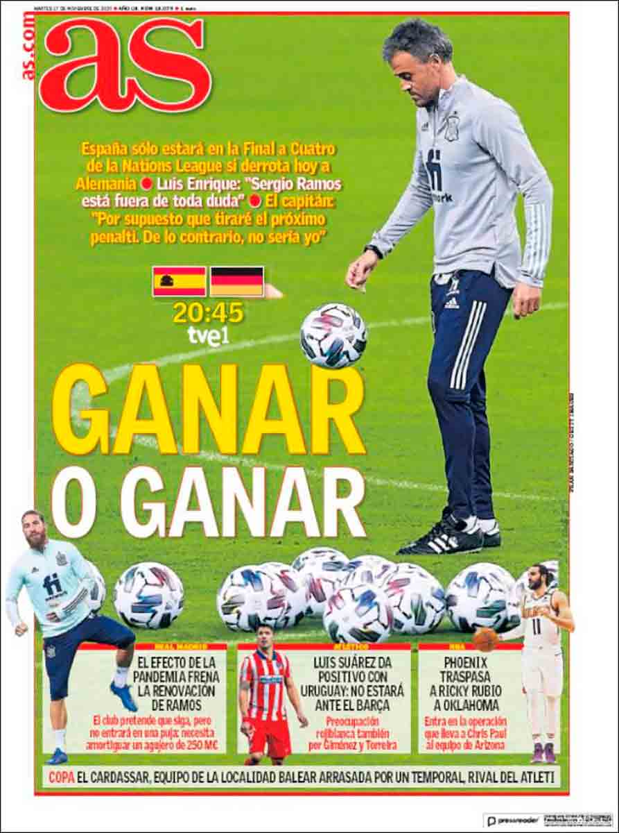 En As, sin embargo, albergan más dudas acerca de la continuidad de Ramos y, tras otro titular con aspiraciones de ilusionar al aficionado sin conseguirlo, destaca las palabras de Luis Enrique: “Ramos está fuera de toda duda”. Pues manda narices que tenga que ser un emblema culé quien aporte un poco de sensatez a esta persecución a la que está siendo sometido Sergio Ramos por fallar dos penaltis tras haber convertido cerca de nueve millones de penas máximas consecutivas.