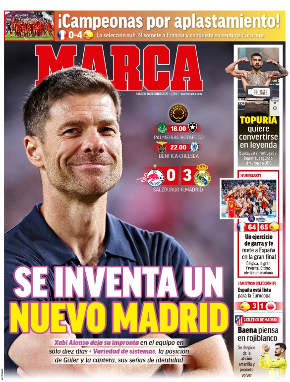 Nos gusta ver sonreír a Xabi, a Gonzalo, a Jude, a Arda y, cómo no, a Vini, a quien el otro diario madrileño dedica toda la portada: