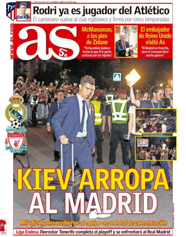 En el resto de medios de comunicación, mientras tanto, un poco de fichajes en Barcelona -'Sport' ya está con la campaña veraniega esperando que el Real Madrid caiga mañana para así hacer una pausa en su programación- y mucho de Kiev en la capital de España.