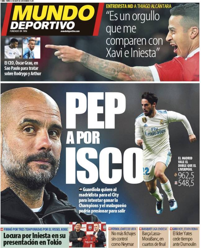 Ahí tenéis a 'Mundo Deportivo', con toda la artillería, buscando desestabilizar sin ningún pudor. Caretas fuera, que diría aquel. Dicen que Guardiola quiere a Isco y lo hacen justo el día antes de que el malagueño vaya a disputar una nueva final de Champions League. El objetivo es hacer ruido e intentar que Isco y algunos compañeros puedan descentrarse. Por desgracia para ellos, el Real Madrid y el propio futbolista están acostumbrados a jugar este tipo de partidos y a lidiar con informaciones incendiarias en momentos importantes. Si Isco no duerme esta noche no será por 'Mundo Deportivo', sino porque mañana tiene una cita con la historia.