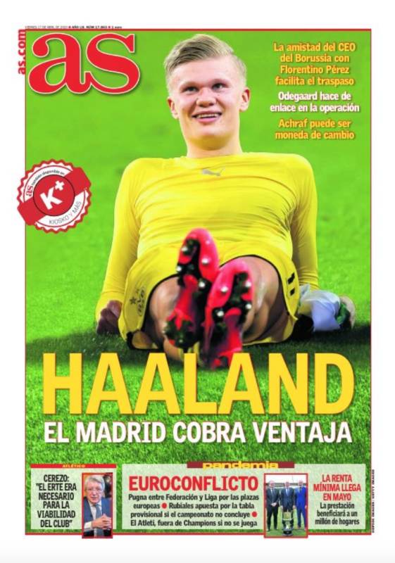 No dejamos la magia que nos llega también de As en una portada asombrosamente cataculé. Una portada que podría haber firmado Sport o Mundo Deportivo, si Sport o Mundo Deportivo fueran diarios madridistas. Es la traslación del cataculerismo al catamadridismo, donde caben ouijas, señoríos con olor a naftalina e invents del tamaño de la cabeza que nos muestran de Haaland, que en la fotografía parece salido de una película de Lars von Trier, como si el propio As fuera el siguiente proyecto del inefable director danés.
