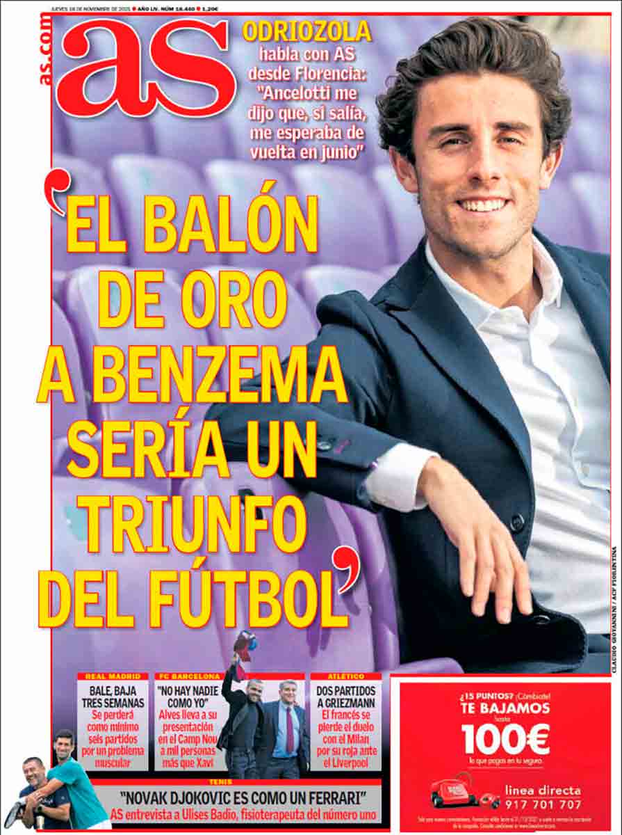 En As, Odriozola afirma que si el Balón de Oro termina en las manos de Benzema sería un triunfo para el fútbol.