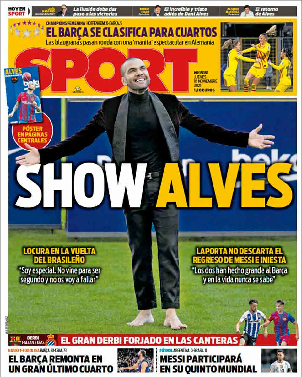 Después de un asunto tan importante como este, la verdad es que no tenemos el cuerpo para mofarnos de Dani Alves —prototipo del perfecto charlatán embaucador— en la portada de Sport, aunque lo merezca.