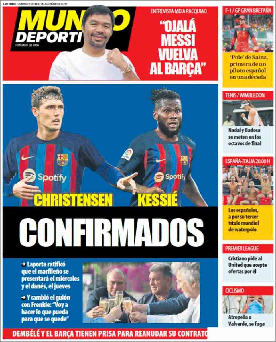 - A este invita la casa, me alegro de haberle ayudado. Pero, disculpe la pregunta, ¿esos Christensen, Kessié, Lewandowski, Umtiti, el otro… Ousmane, aquí arriba Leo sobre Messi… no son muchos jugadores para un solo equipo?