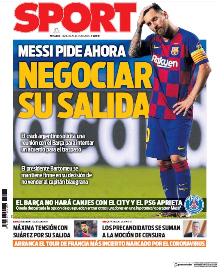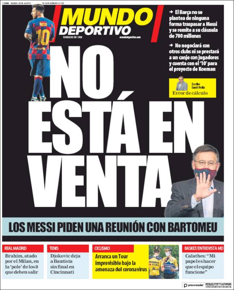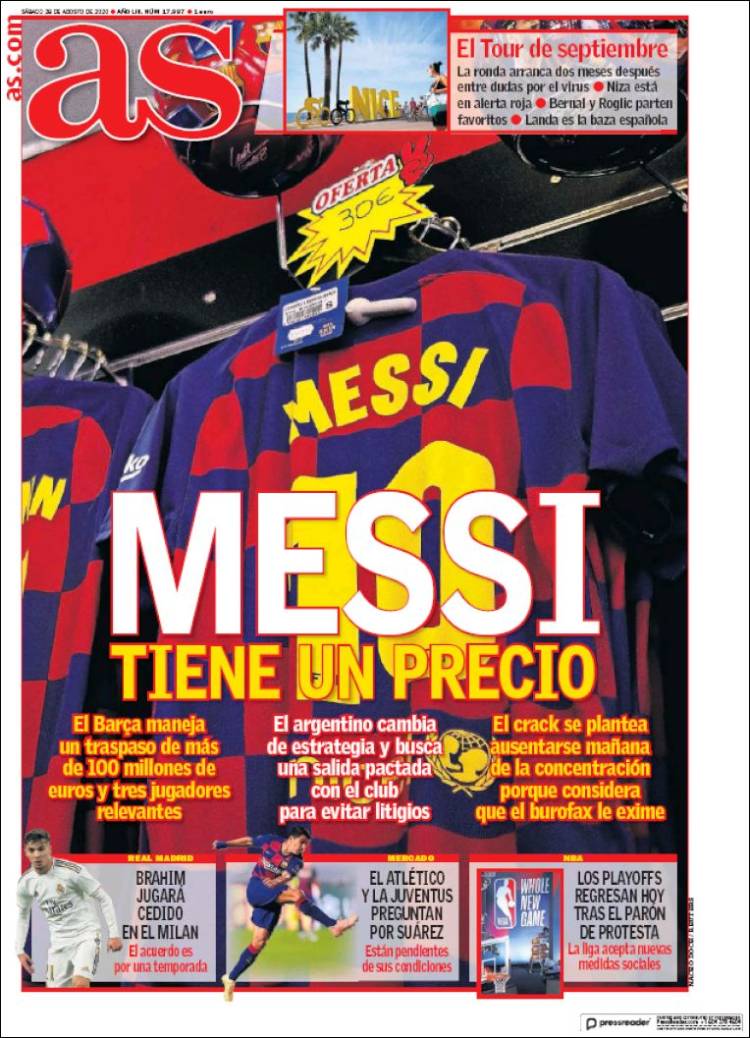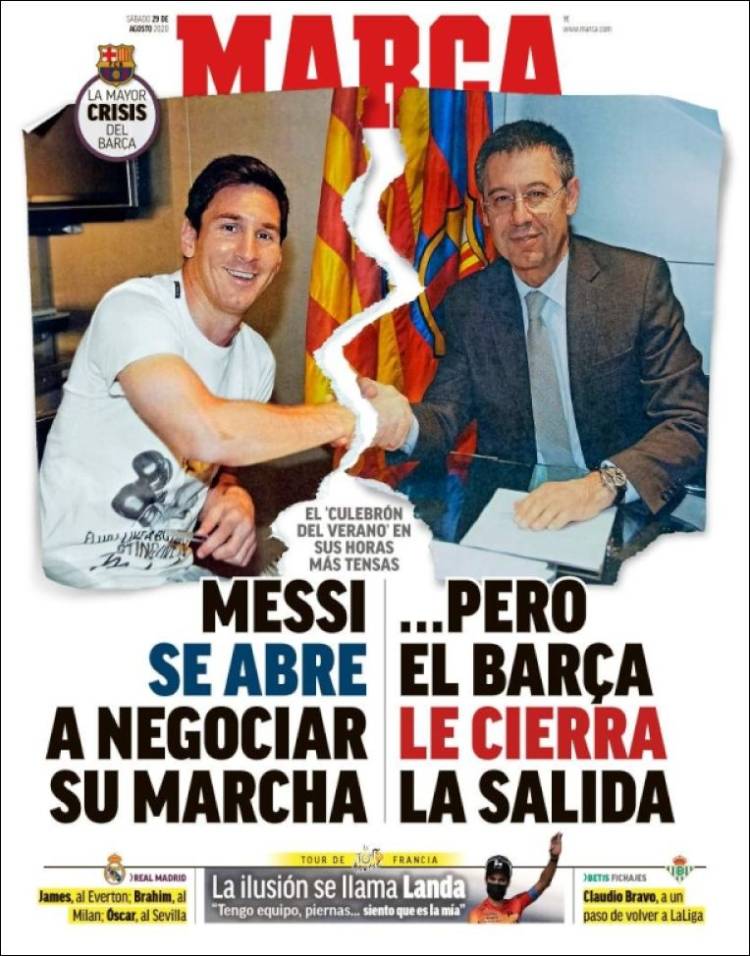 Todo esto se parece a la campaña contra el jefe de policía McCluskey. ¿Recordáis aquello de que se pagaba para que hablaran mal de Cuchitini? ¿Cómo es posible que el mejor jugador nunca visto sobre la faz de las portadas barcelonistas, protagonista de alipóricas fachadas laudatorias que probablemente hicieron enrojecer al mismo alabado, PIDA AHORA (LOS MESSI, ¡LOS!) NEGOCIAR? "Ahora, ¿no?". Lo que les decimos. Es la Revolución Demencial a la que se suma As, con otra portada más de saldo, y Marca, donde se aprecia ese humo del que os hablábamos al principio. Humo, cuánto humo, estimados galernautas.