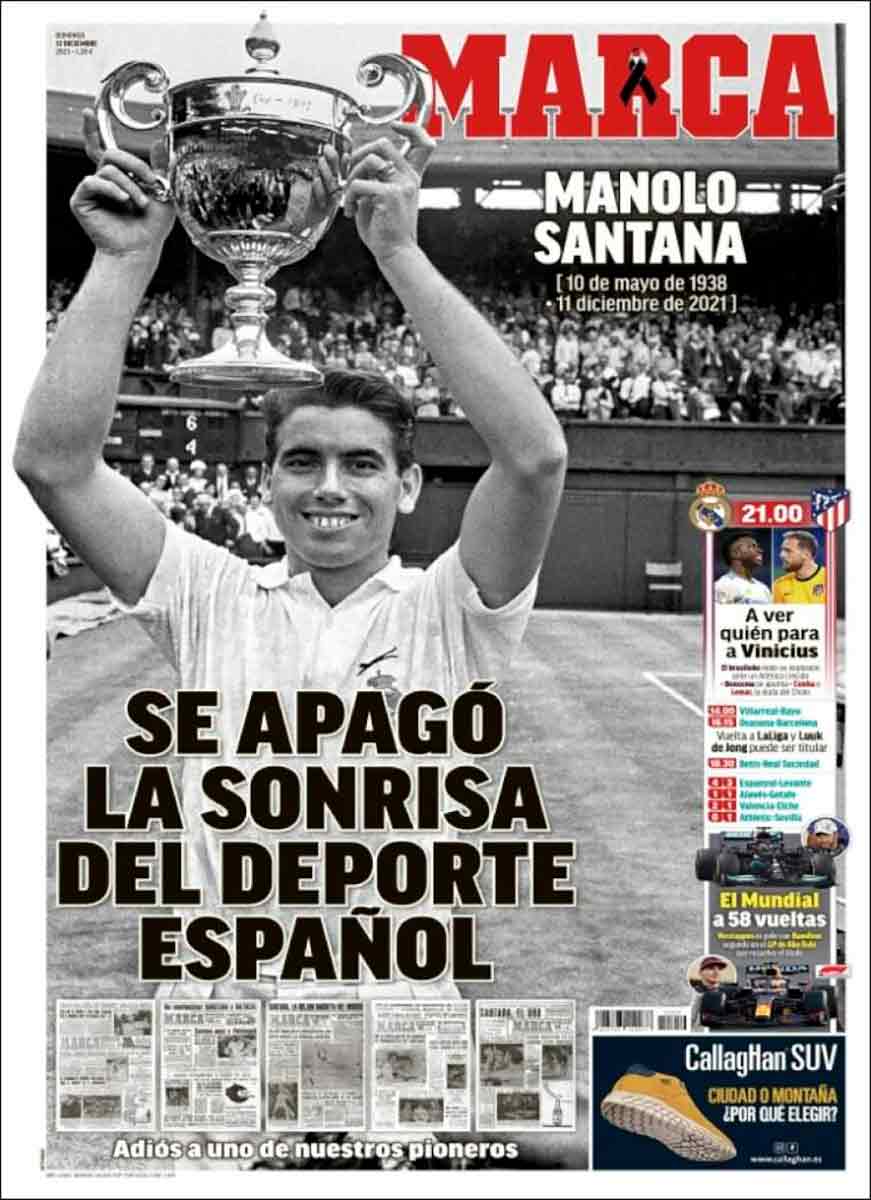 Buenos días. Ayer falleció Manolo Santana. Como bien dice Marca en su portada, se apagó la sonrisa del deporte español. Porque Manolo no solo fue un pionero del tenis y una leyenda del deporte; Manolo no solo ganó Wimbledon, US Open y dos Roland Garros; Manolo no solo realizó una labor impagable con y por las generaciones posteriores de tenistas españoles; Manolo, además, fue un caballero que derrochaba simpatía, educación, encanto y saber estar.