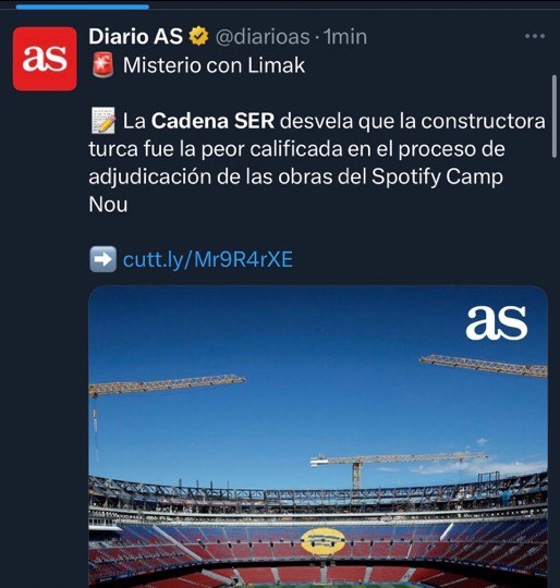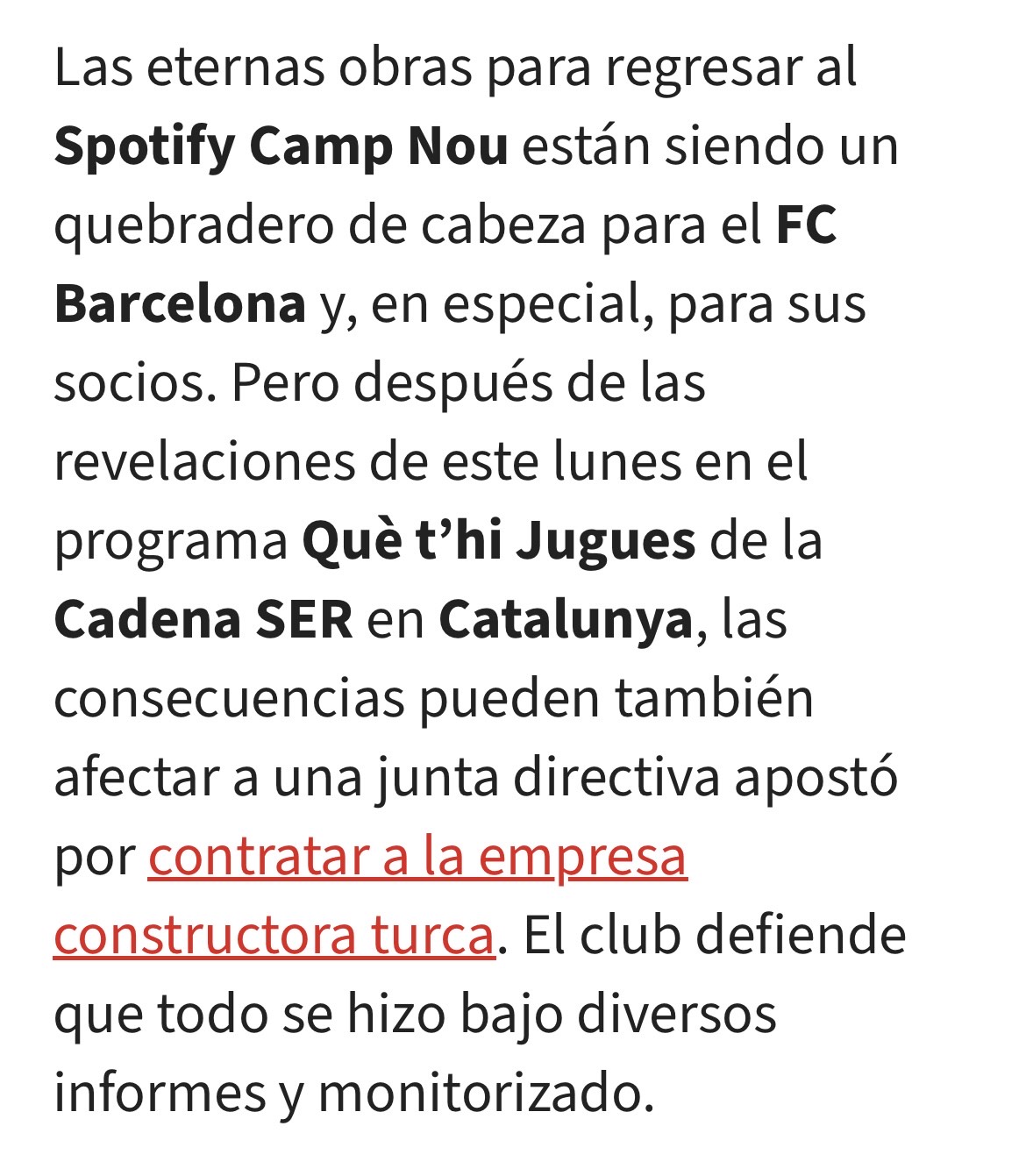 Resulta que se ha sabido que Limak, la constructora turca que está acometiendo la inacabable obra del Camp Nou, presentó la oferta peor valorada de cuantas hubo, y que sin embargo ganó vaya usted a saber por qué. Hace no tanto, en una asamblea telemática culé, un soci preguntó a Laporta de qué vivía. No hubo respuesta. No estamos diciendo que esta anécdota tenga algo que ver con el hecho de que el proyecto de remodelación del Camp Nou  acabara en manos de la empresa menos capacitada. O sí lo estamos diciendo, vaya usted a saber.