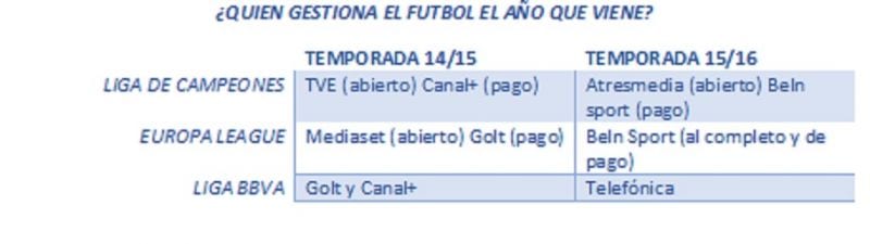 Por otro lado, Telefónica había arrebatado a Mediapro los derechos televisivos para esta temporada (última de gestión individual) del FC Barcelona, Real Sociedad, Celta de Vigo y Espanyol.
