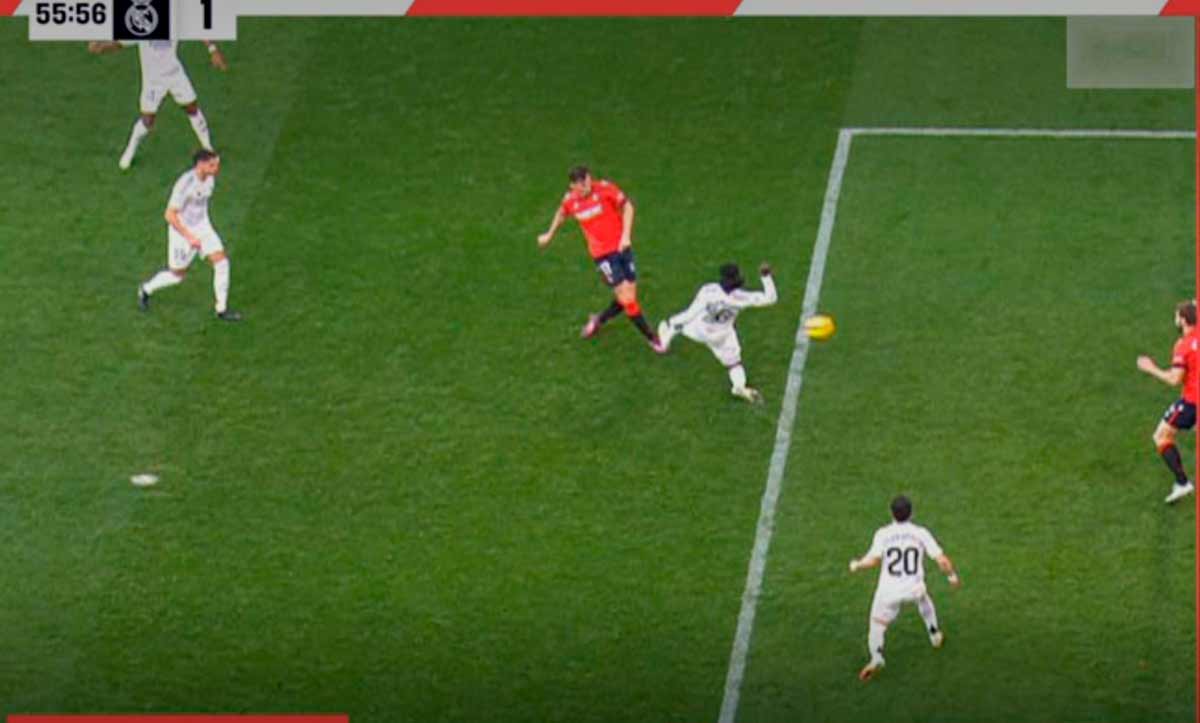 Entre lo feo, a la par que malo, el sistema. Árbitro, VAR y realización, como mínimo, se conchabaron para ofrecer otra actuación culmen en esta competición corrupta que padecemos. Hernández Maeso se zampó este pisotón a Vinícius.