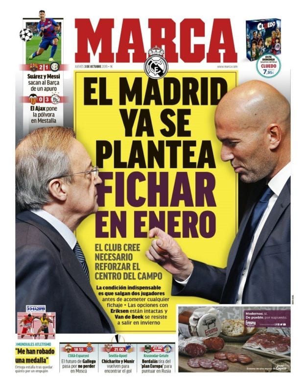 Por lo demás, Marca nos informa de la intención madridista de reforzar el medio campo en enero (ojalá la predicción sea acertada) y la prensa cataculé celebra legítimamente su no menos legítimo triunfo de ayer ante el Inter.