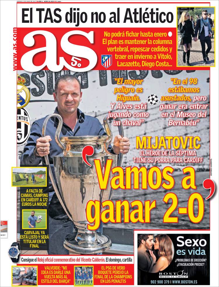 Todo es normal. Respire tranquilo y pondere que su comportamiento se produce en el contexto de extraordinarias circunstancias. O no tan extraordinarias. El Madrid se presenta en su tercera Final de Champions en cuatro años. Ha ganado las dos anteriores y dice Pedja Mijatovid (casi nadie al aparato, como dicen los que son tan viejos como para decir "al aparato") que ganamos 2-0.