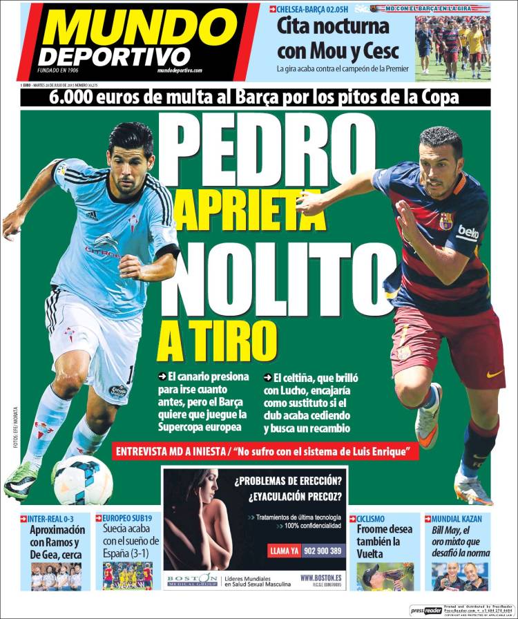 Mundo Deportivo nos alerta sobre el posible fichaje de Nolito por el Barça. La posición oficial de La Galerna al respecto es que no nos gustaría.