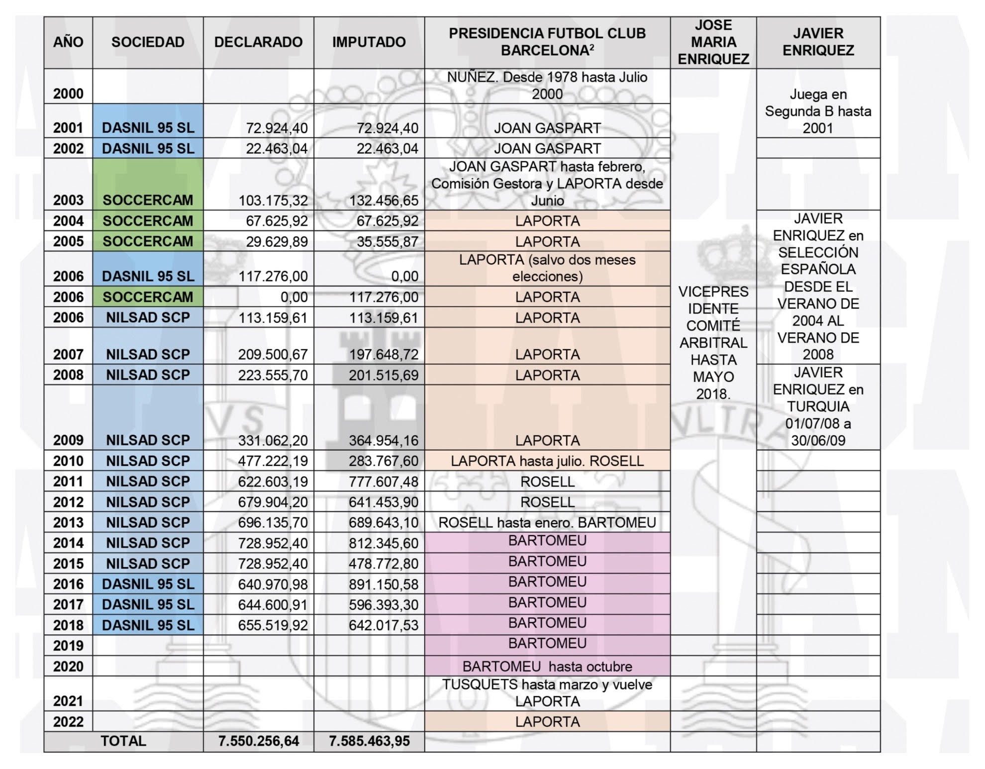 Lo que realmente sabe todo el mundo porque cualquiera que quiera puede ver las pruebas a un click de distancia es que el FC Barcelona pagó a Negreia durante 17 años, aumentando progresivamente sus emolumentos, indicio esto de un aumento de la satisfacción del cliente. Sabemos todos por boca de Bartomeu, Laporta y algunos otros directivos que los pagos comenzaron con Núñez, quién parece que supo ocultar estos pagos con mayor habilidad que sus herederos.