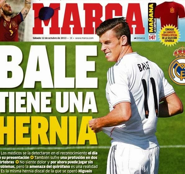 Para ir calentando motores, a la hernia ya le precedió un precio de traspaso hiperbólico que hubiera servido para construir colegios, hospitales, autopistas y hubiera servido para dar luz gratis a una ciudad como La Coruña durante no se sabe cuánto tiempo (artículo de Ana Ortiz en El Mundo titulado “Con lo que vale Bale se salva el CSIC”, que apesta a demagogia incluso siete años después). Después hubo traspasos más onerosos que, por supuesto, ya no preocuparon a nadie. A la hernia le siguió el golf, no saber español, no dar entrevistas, las lesiones (casi voluntarias, naturalmente), su falta de actitud y de implicación, su poco compromiso con el club, etcétera. Todo esto ya durante sus dos primeros años. Tiren de hemeroteca y lo comprobarán (prensa, por tierra, mar y aire).