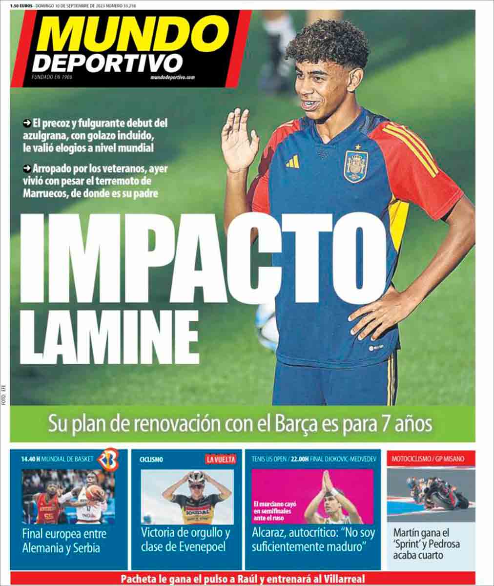 El último héroe del día ya fue convenientemente reseñado en el portanálisis de ayer, así que bien poco podremos añadir hoy. No se nos puede escapar, sin embargo, el hecho de que As lo compare ya con Messi y que Mundo Deportivo diga que Neymar -otro héroe caído- supera a Pelé. Ya lo ven: fuegos artificiales y estruendo, barraca de feria, dolor de cabeza, de oídos y de cuello, esta vez provocados por el hermanamiento entre la meseta y ese país pequeñito de arriba a la derecha por obra y gracia de Lamine Yamal, el héroe en ciernes de la actual parroquia culé, que se sigue pareciendo mucho a la no actual parroquia culé, toda ella encantada de saberse heroica, de venderse heroica, de alquilarse heroica, de apalancarse heroica... Nos lo quitan de las manos, señora.
