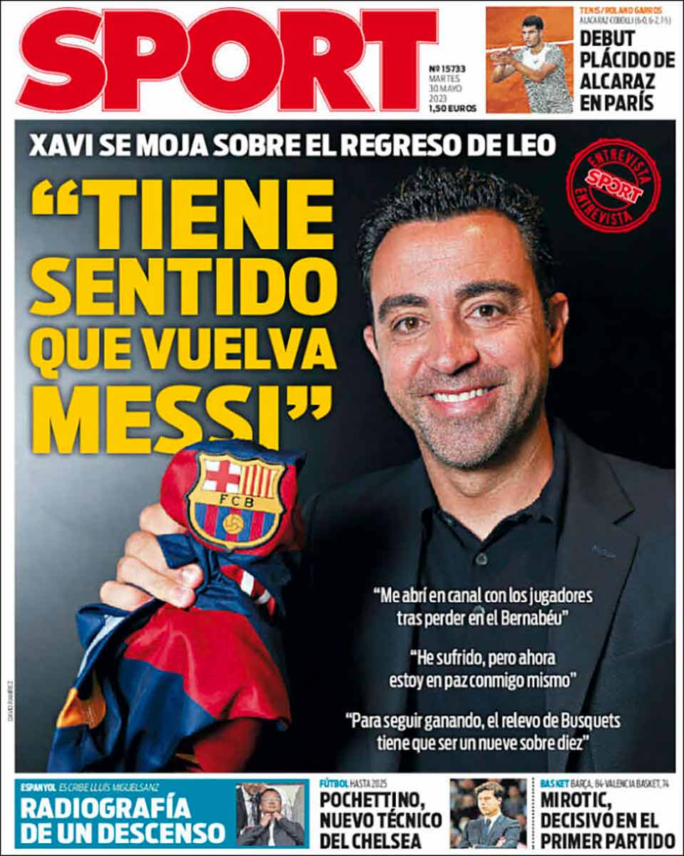 En Sport aparece un Xavi sonriente con la camiseta del Barça hecha un gurruño, como cuando tu madre te mandaba doblar la ropa y lo hacías corriendo para irte a jugar al fútbol. Dice que tiene sentido que Messi vuelva. Y sensibilidad, añadimos nosotros, sentido y sensibilidad. La defensa de la vuelta de Leo se aposenta en los sentimientos y no en la razón.