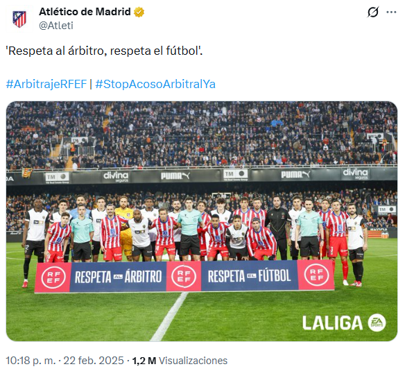 Entendemos que lo de «Respeta al árbitro» es arbitrario, valga la redundancia, y aplica según sople el viento. Lo de «respeta el fútbol» mejor ni lo comentamos, es el Atleti de Simeone, Gil Marín, Cerezo y el Frente Atlético.