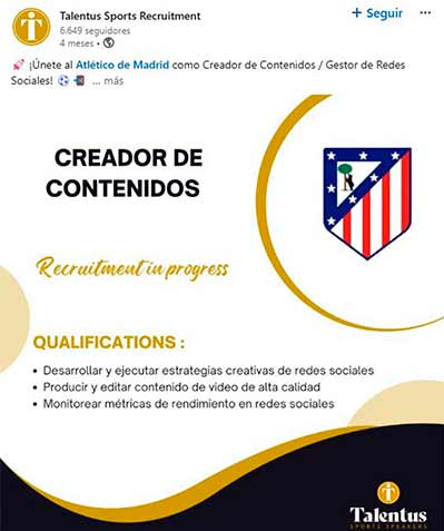 A la vista de que la empresa Talentus de Munuera Montero ayudaba al Atleti a buscar un creador de contenidos, la pregunta es inevitable: ¿habrá contratado el Atleti a su talentoso CM con la ayuda de la empresa del colegiado al cual ese mismo CM ha afeado su conducta?