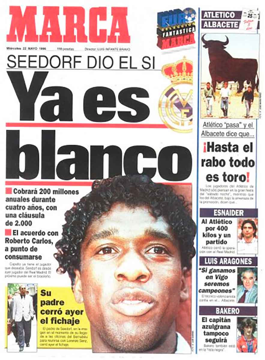En 1996, el periódico español con más lectores —es un decir— publicó en su portada que Seedorf ya era blanco. Nunca agradeceré lo suficiente la lucidez de mi tutora Lourdes, que al verlo sobre el pupitre de uno de esos chicos que les gustaba uniformarse dijo una frase que nunca olvidé: “ahora ya sabemos que el Marca, además de madridista, es racista”.