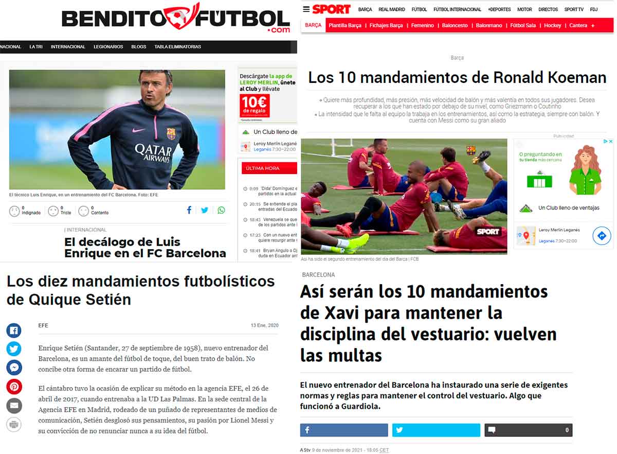 Desde que Moisés recibiera de manos de Dios el primer decálogo de la historia, los Diez Mandamientos, raro es el día que no asoma alguno a los medios de comunicación. Y si hay un club —o entorno— aficionado a promulgar decenas de mandamientos, ese es el Fútbol Club Barcelona. Dicen que incluso podría construirse un dique de decálogos azulgranas capaz de contener las aguas del Mar Rojo.