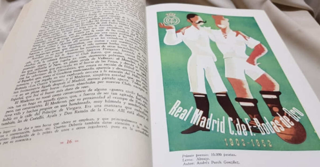 Hablar del Real Madrid tiene siempre para mí la misma emoción (grata y nostálgica al mismo tiempo) que hablar del mejor periodo de mi juventud. Como socio y como jugador, mis recuerdos más luminosos han estado y están unidos al Club blanco. Días de entrenamiento y de partido en el simpático terreno (sí, de tierra) de Narváez y O’Donnell. Evocación de aquel wonder-team, en el que era yo el único que debía suplir mi falta de clase, comparada con la de mis otros diez compañeros, con mi entusiasmo por el fútbol y por el Madrid, que me permitió llegar a aquel equipo primero, y hasta capitanearlo. Nombres inolvidables de co-equipiers: primero, los desaparecidos prematuramente Sotero Aranguren, Machimabrrena, Irureta, Erice (mi compañero en la zaga), Sansinenea, De Miguel, jugadores extraordinarios; luego los que por fortuna viven (¡y ojalá llegues a asistir al centenario de nuestro Club!), Santi Bernabéu, los Petit, Eulogio Aranguren, Castell, Teus (tan ágil periodista ahora como ágil goalkeeper antes), Sicilia (entrañable amigo), el insustituible Pablo Hernández Coronado, Ricardo Álvarez, Juan Antonio Sánchez de Ocaña (hoy nuestro gran secretario)… Y tantos otros ex jugadores y amigos cordiales. Los vaivenes y los distintos quehaceres de la vida nos han separado pasajeramente. Pero cuando volvemos a encontrarnos en el magnífico Estadio de Chamartín del Real Madrid (al que yo añadiría “…y de Santiago Bernabéu”), se comprueba una vez más que la amistad es uno de los pocos valores que perduran en la vid… ¿Verdad, Chulilla, Bernardo Menéndez, López Quesada, Muguiro, Gandarias, Vinardell, etc? ¿Qué vuelvo la vista atrás? Es inevitable, y lo hago gustoso. Porque hoy la maquinaria futbolística (organización, juego, propaganda, público, etc.) quizá se haya engrandecido; pero en ese periodo nuestro, de jugadores y de público amateurs (y dejando aparte motivos sentimentales), el deporte del balón tenía, a mi juicio, una cualidad y una calidad espirituales, sí, absolutamente desinteresadas, que actualmente faltan. Nosotros no cobrábamos más sueldos ni otras primeras que… las lesiones. Pero, en fin, a pesar de todo, y viviendo al día, volverá el Real Madrid a ser campeón de Liga y de Copa muchas veces más. ¡Qué se le va a hacer, queridos enemigos! En estas bodas de oro del Real Madrid, del Club ‘señor’ siempre, en el mejor sentido de la palabra (esto lo reconocen hasta los rivales, incluso esos espectadores que gritan aún a los ‘merengues’), hay muchas páginas escritas con el oro de la gloria futbolística, que es también una gloria a su manera. ¡Qué horas gozosas hubiera pasado con estas bodas mi antiguo presidente y querido amigo, socio número 1 del Club y número de deportistas, de caballerosidad cordial! Me refiero, naturalmente, al añorado Pedro Parages. En esta celebración todos los que le conocíamos le recordamos con igual afecto. Que nuestro querido Club siga ocupando su puesto cada vez más señero otros cincuenta años… Y que los amigos de aquel tiempo nuestro y yo lo veamos…