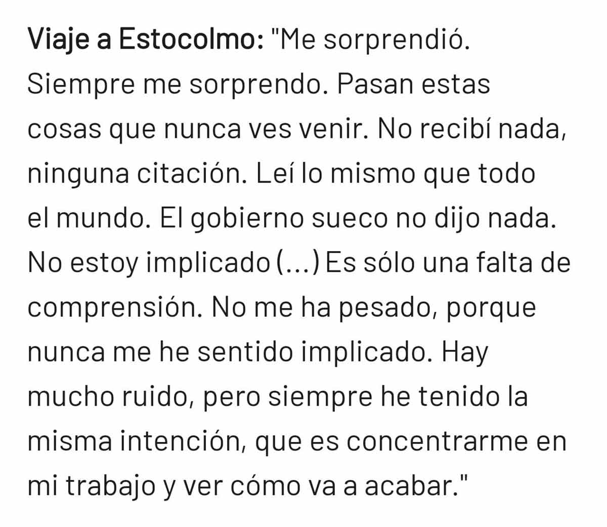 El pasaje más importante de la entrevista es el referido a su presunta imputación por un presunto (todo en el caso es presunto) abuso sexual en Estocolmo. Kylian aclara que ni siquiera está imputado o no tiene notificación de ello, con lo cual gran parte de la letra pequeña de As queda desacreditada.