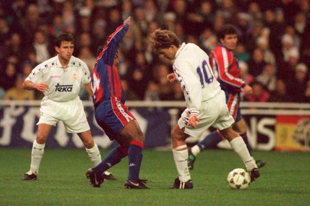 El genio danés acabó en el Real Madrid procedente del Barça en el verano de 1994 tras una temporada de desavenencias con Johan Cruyff. En el equipo capitalino jugó dos campañas siendo la primera de ellas espectacular y reconquistando la Liga para el Real Madrid tras cuatro años de sequía. Laudrup que firmó cuando tenía 30 años habría sido un jugador determinante para los blancos de haber llegado unos años antes porque podría haber anulado la inercia ganadora en el fútbol español del Dream Team, que no hubiese contado en sus filas con un futbolista mágico, brillante y decisivo por sus pases y asistencias en los títulos culés.
