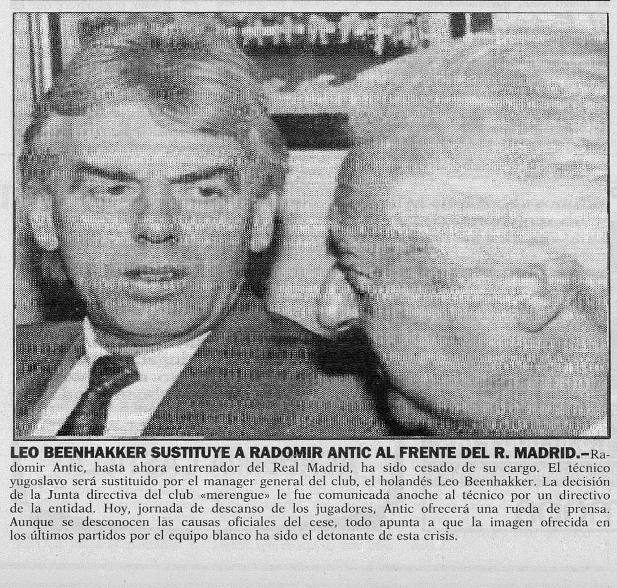 Leo Beenhakker dejó una buena labor con la ‘Quinta del Buitre’ entre 1986 y 1989 cuando conquistó tres Ligas consecutivas, una Copa del Rey y una Supercopa. Ese recuerdo pesó enormemente cuando retornó al Real Madrid en febrero de 1992 para sustituir a Radomir Antic, en una de las decisiones más polémicas de la era Mendoza cuando prescindió del yugoslavo mediado el Campeonato por no jugar atractivo pese a ir líder. El entrenador neerlandés vivió en sus carnes la primera entrega de Tenerife y no pudo reverdecer laureles con el título en la temporada 1991-1992.