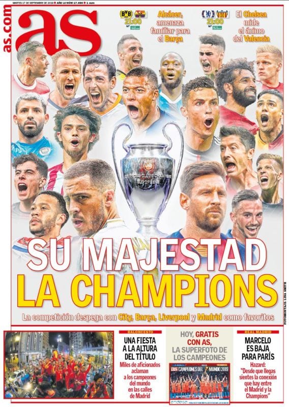 Buenos días. Con la estética cutremárvel que caracteriza esta nueva etapa del diario As, que nosotros hemos dado en llamar relañismo postRelaño, nuestra entrañable Ouija Daily viene hoy con la refulgente verdad a cinco columnas: vuelve la Champions.