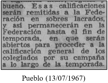 - Aprobado el 12 de julio de 1967, en la Asamblea de la Real Federación Española de Fútbol.